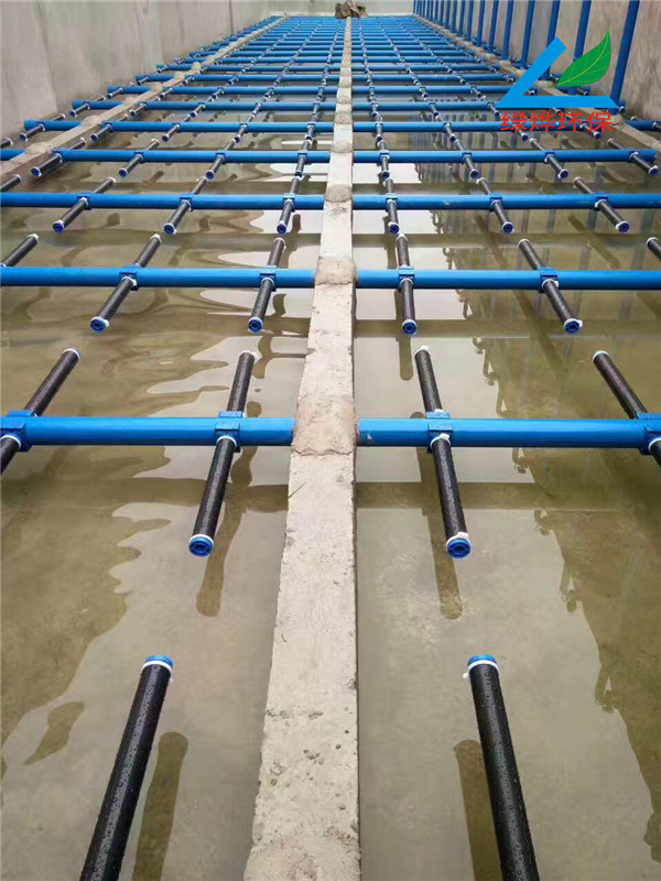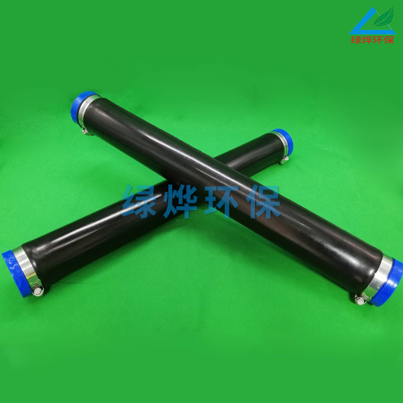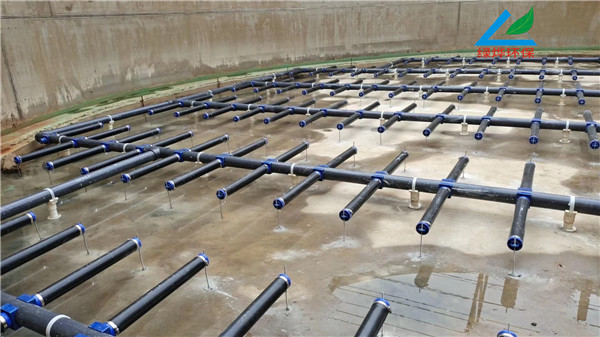长度在580mm以下采用挤出或模压成型,长度大于580mm采用挤出成型。膜管上以1.5mm大小、2×2.5mm的间距打孔,能产生直径1-3mm的均匀微小气泡。膜管顶部有15mm长无气孔区,当中断供气时膜片立即恢复原状,对空气入口起自动防逆流作用。连接头开有进气口,连接进气管,螺纹为32mm的内螺纹,材质为ABS工程塑料。衬管为给水用、耐压为0.1Mpa,外径为63mm的UPVC管材,管式曝气器的安装方式多样,可以做成传统池底固定方式、可提升方式两种,如是池底固定方式,进气管可以采用90mm、110mmPVC管来连接,如果是做成可提升安装,可有专用的三通或活接来固定,若单条曝气管长度在1米时,安装时,需要要曝气管的尾端固定,以免在曝气管产生晃动,造成中心连接管损坏。